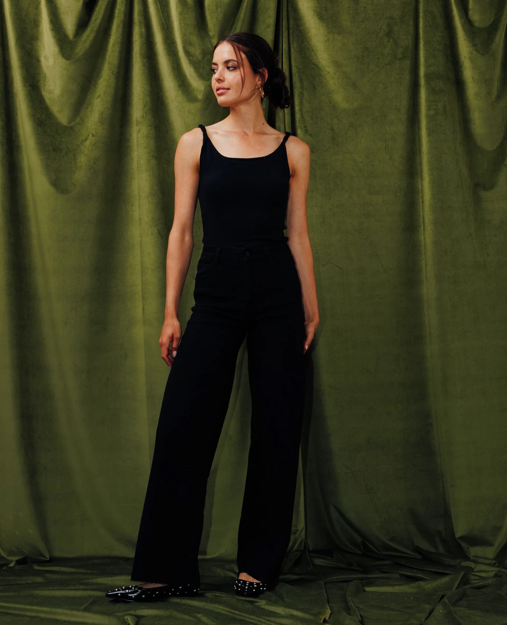 J71-1 / Jean wide stretch taille haute bas coupés
