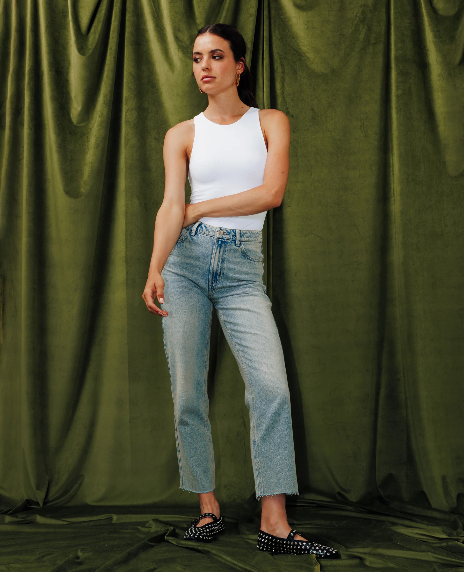 Jean straight taille haute bas coupé