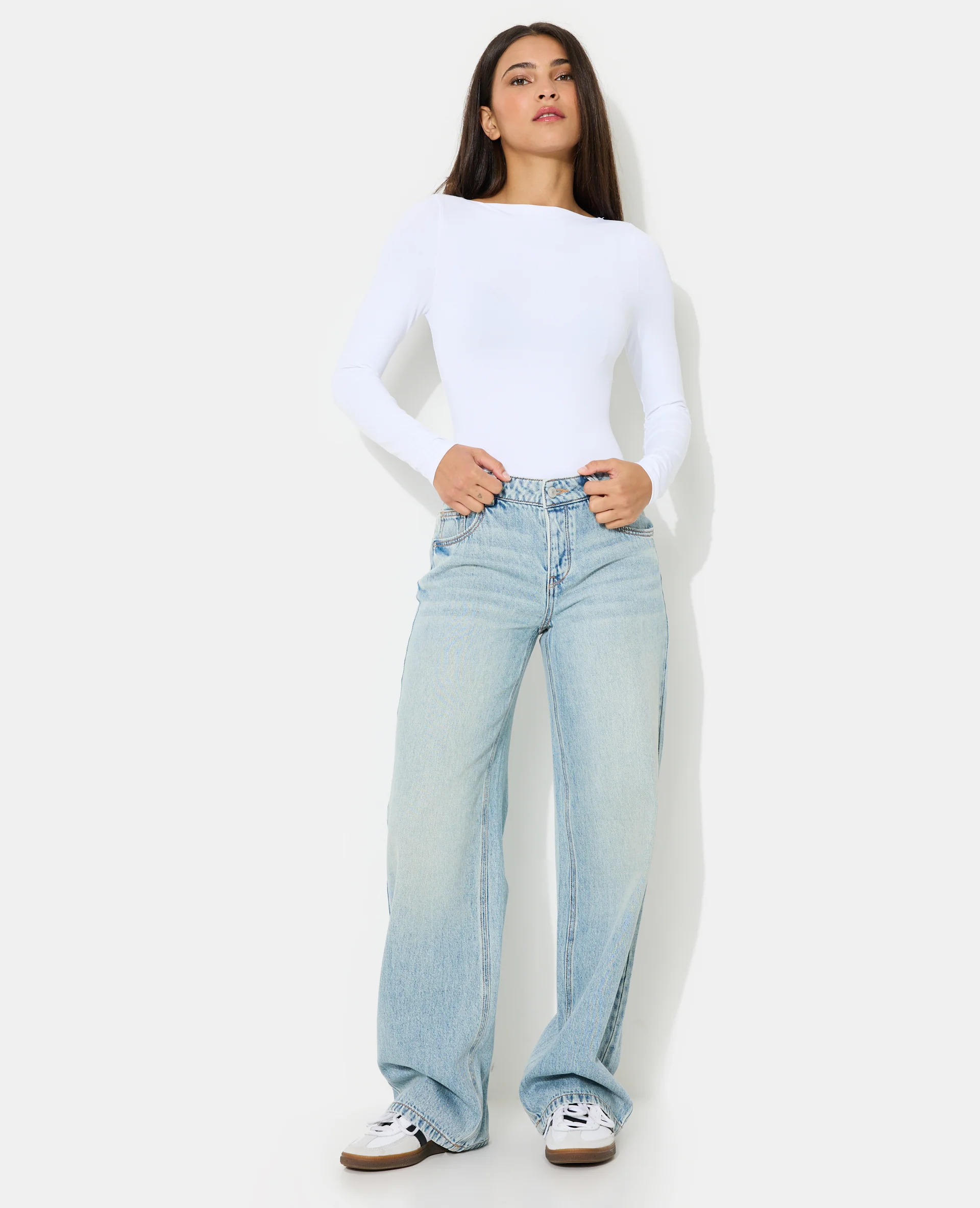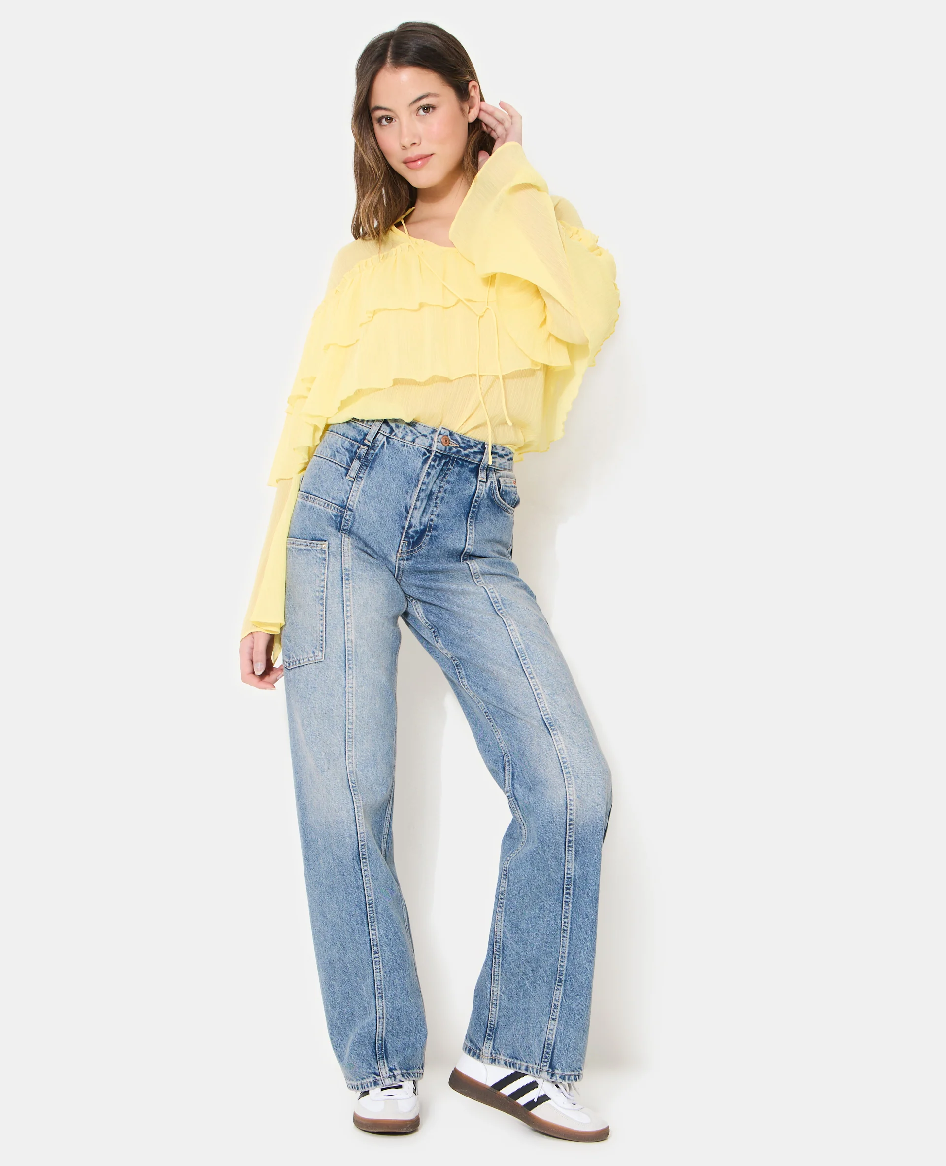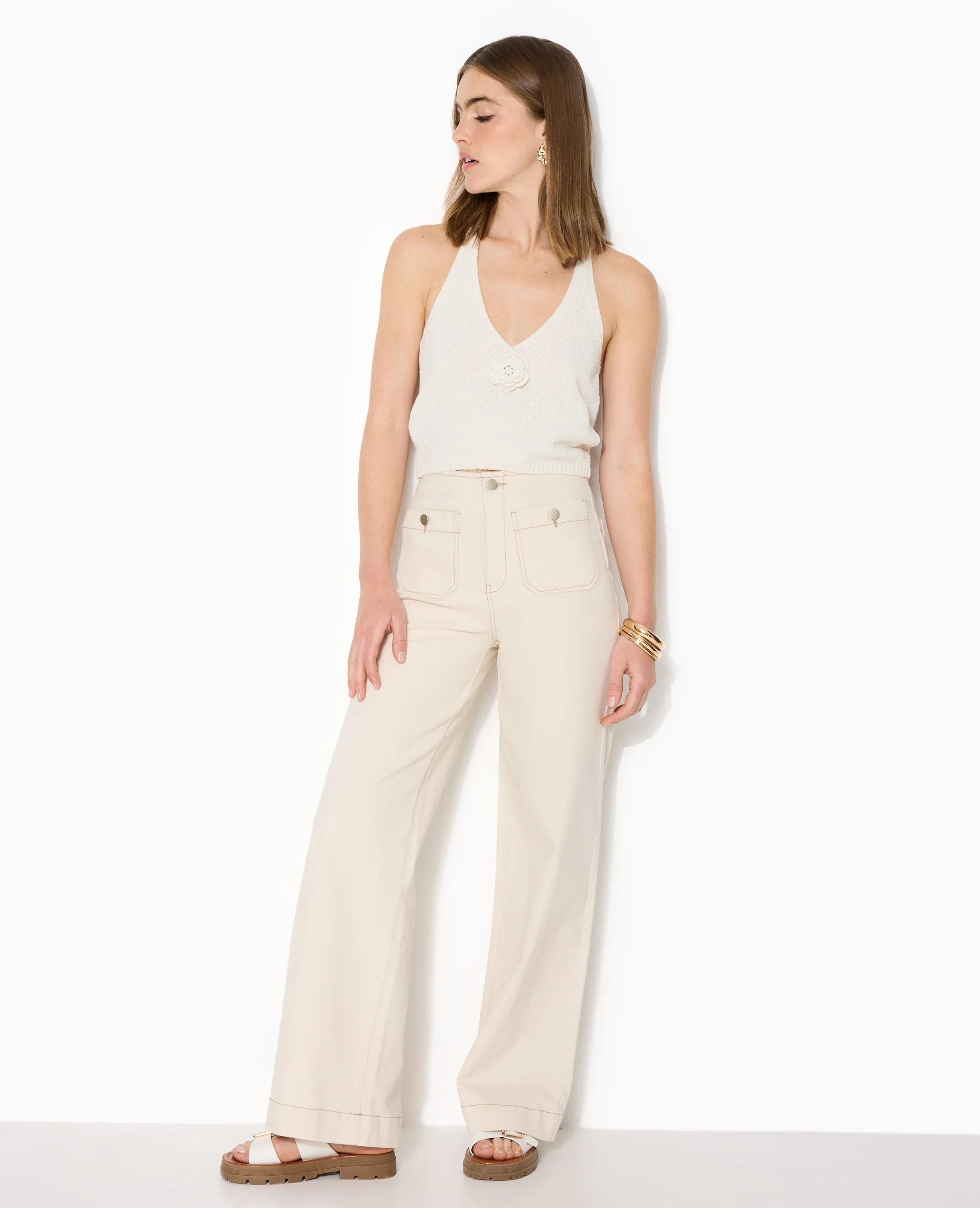 Jean wide taille haute avec poches devant