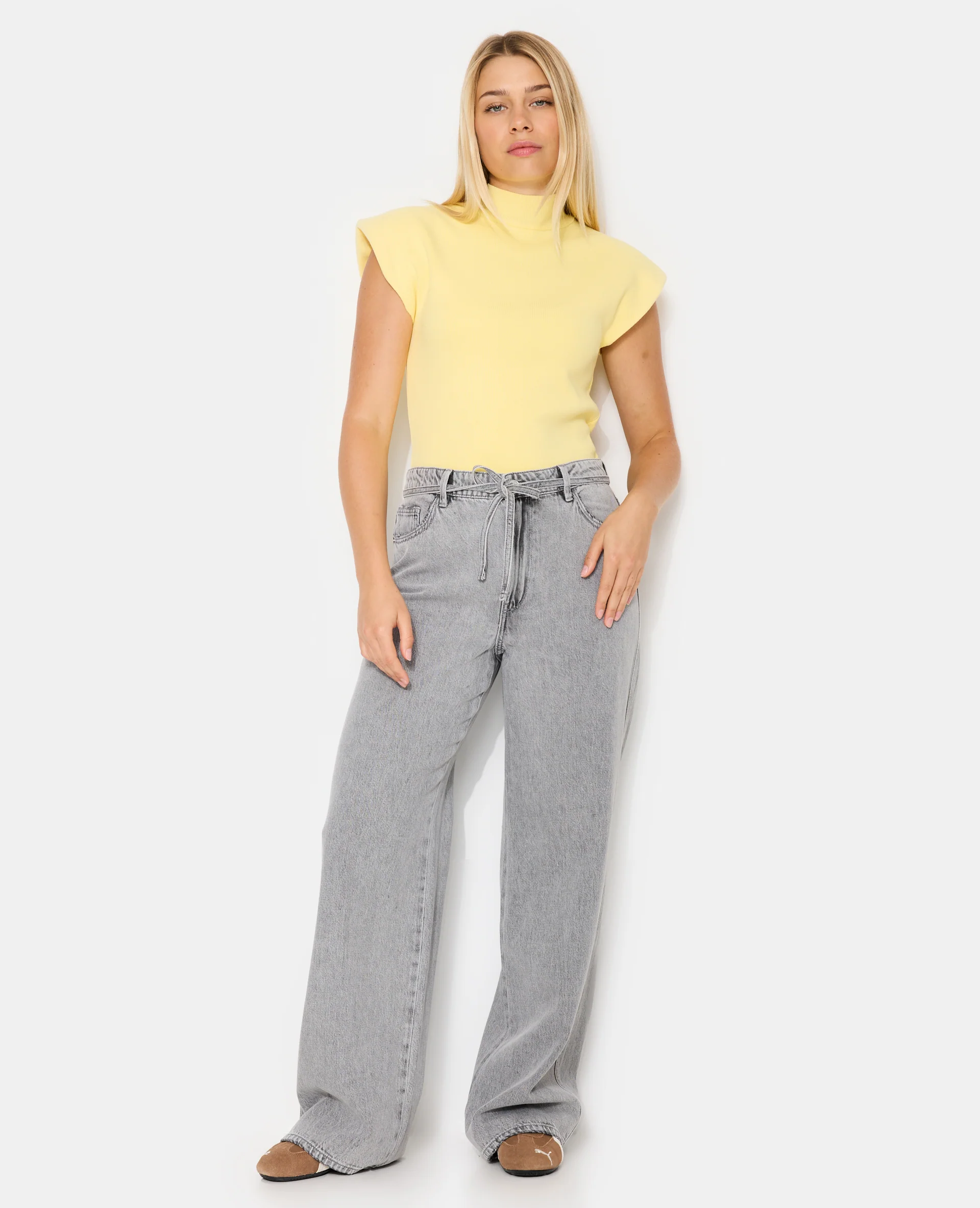 Jean baggy taille basse avec ceinture à nouer