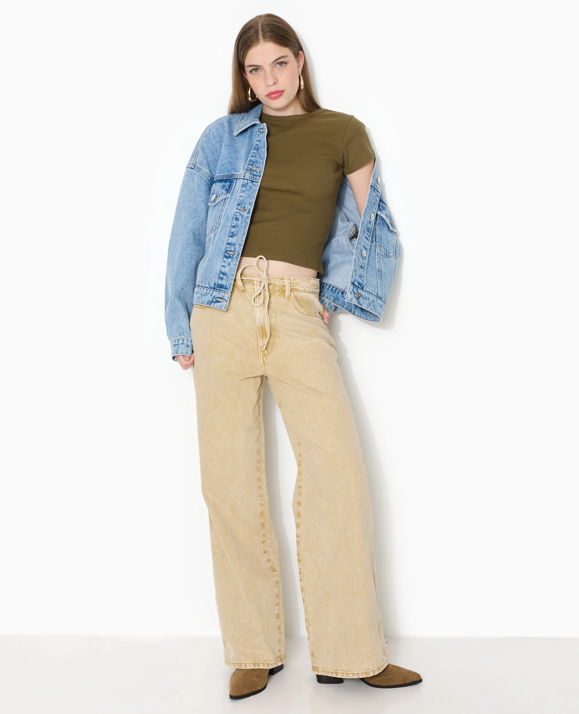 Jean droit taille basse avec ceinture à nouer