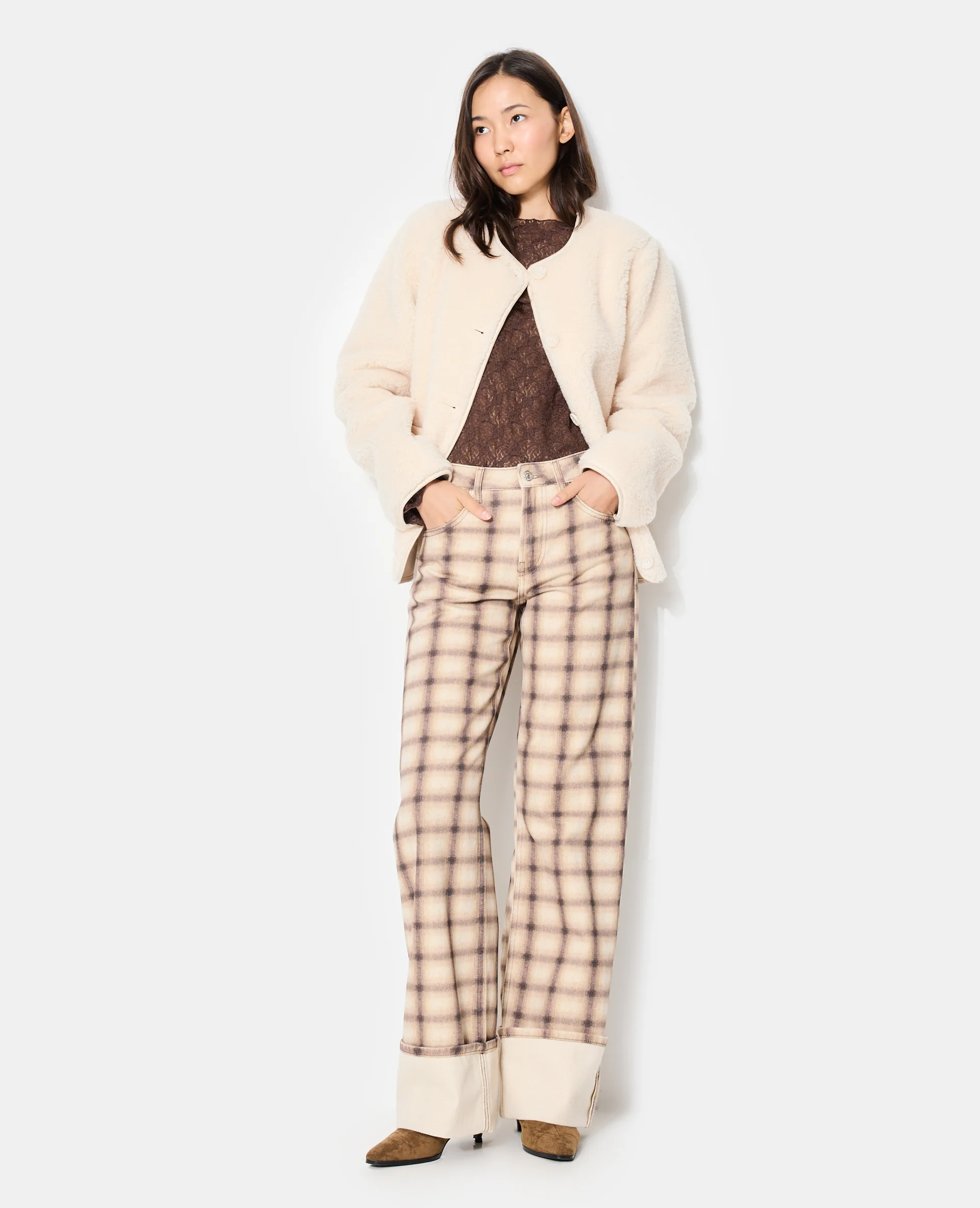 Jean droit avec grand revers motif carreaux