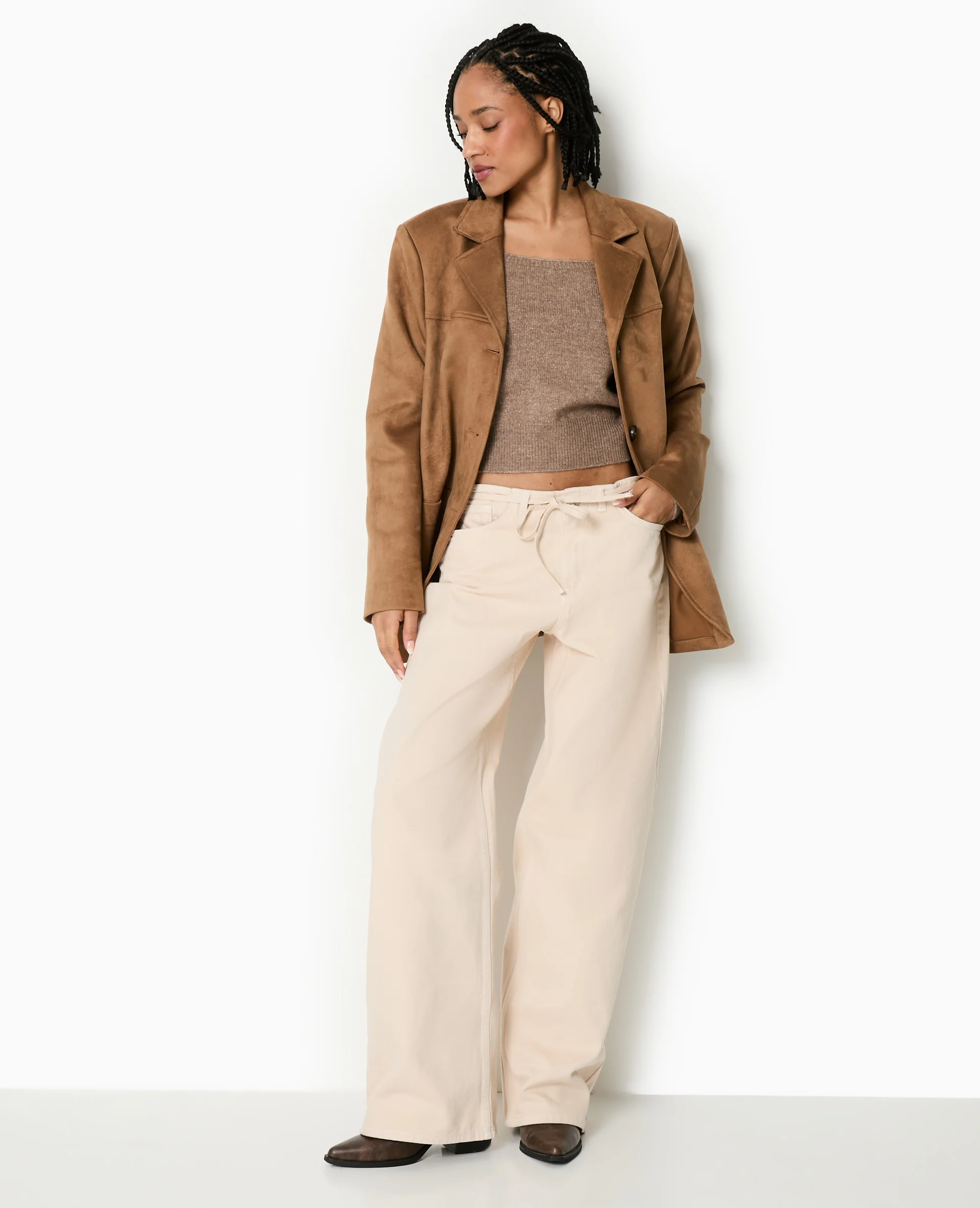 Jean baggy taille basse avec ceinture à nouer
