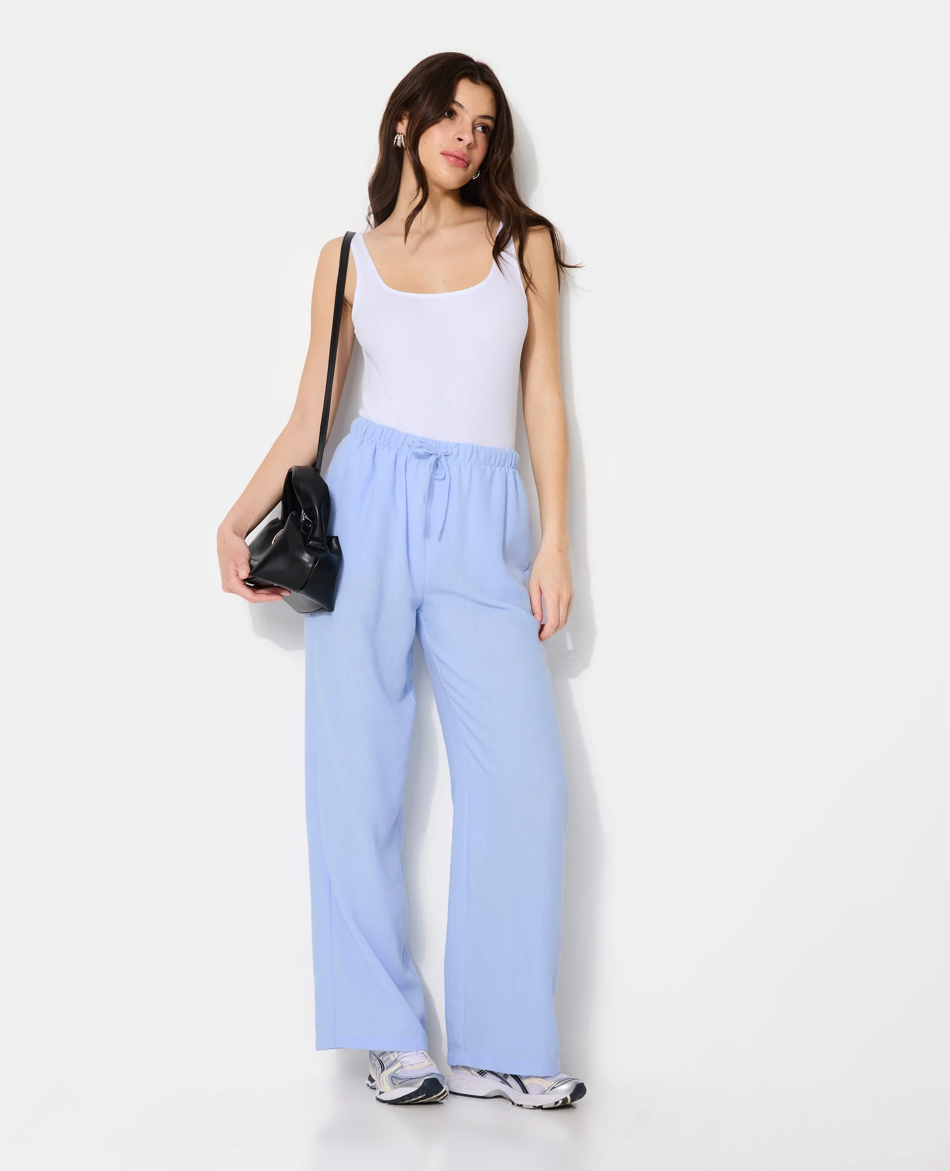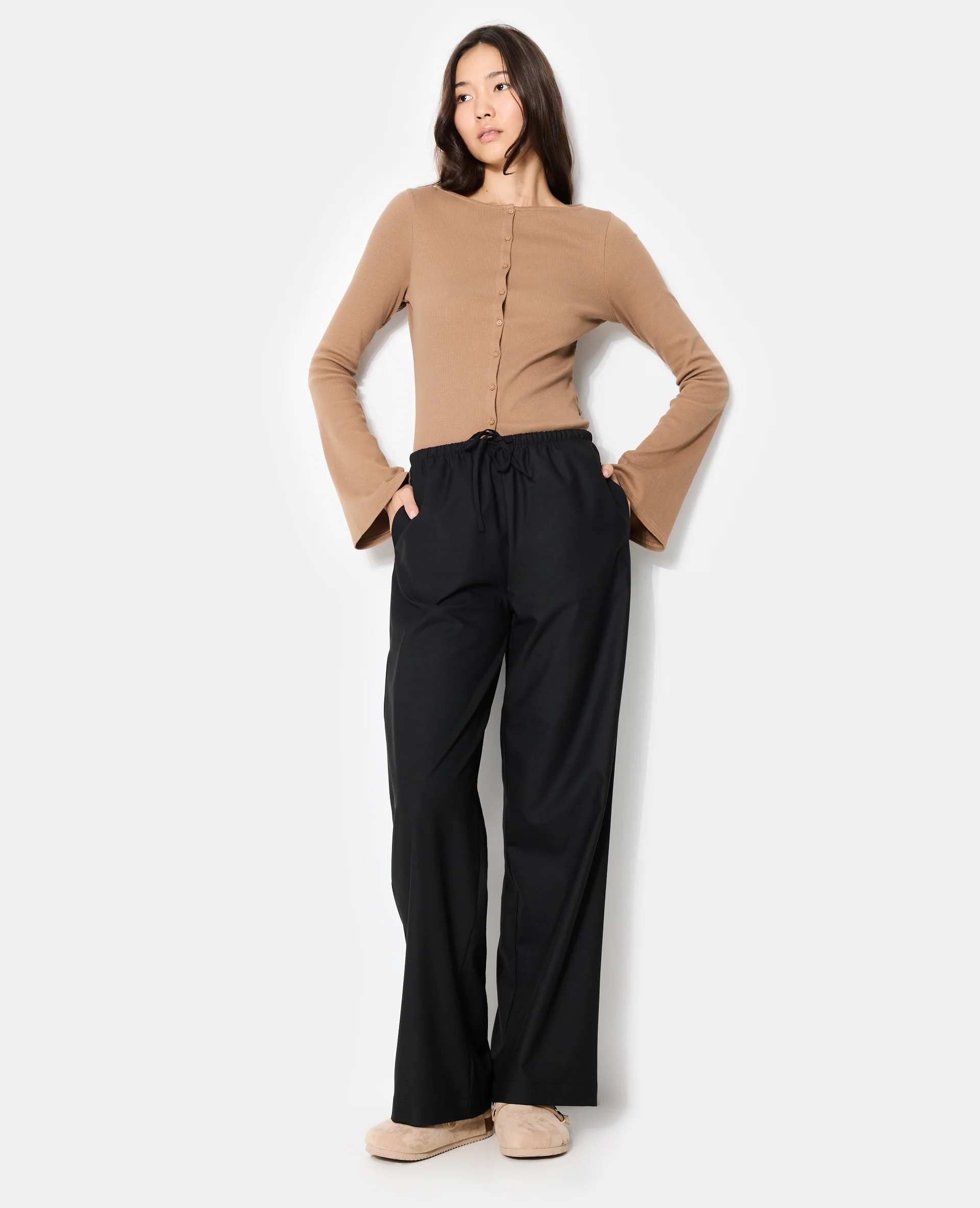 Pantalon large et droit avec lien coulissé