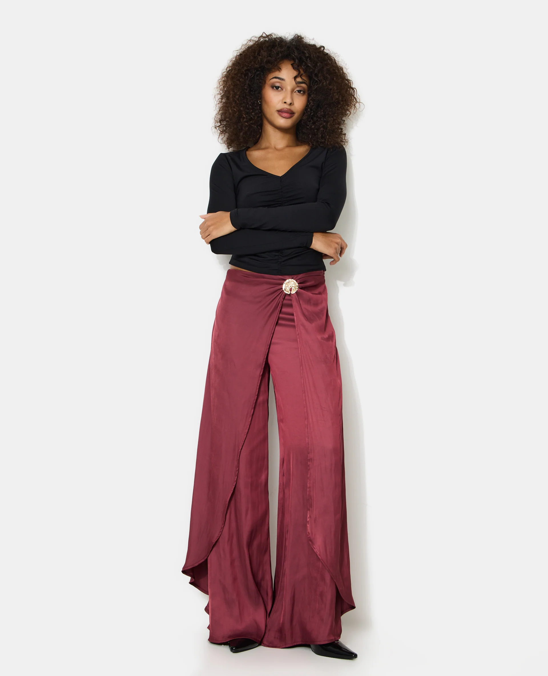 Pantalon en satin effet portefeuille avec détail bijou