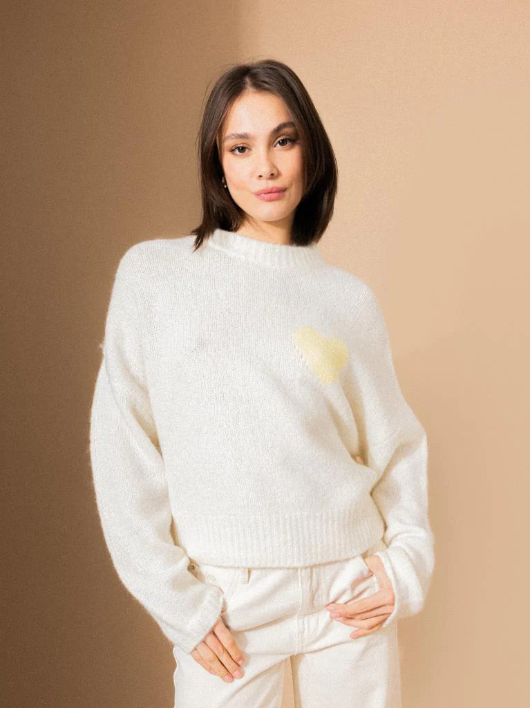 Pull contenant mohair et laine avec cœur
