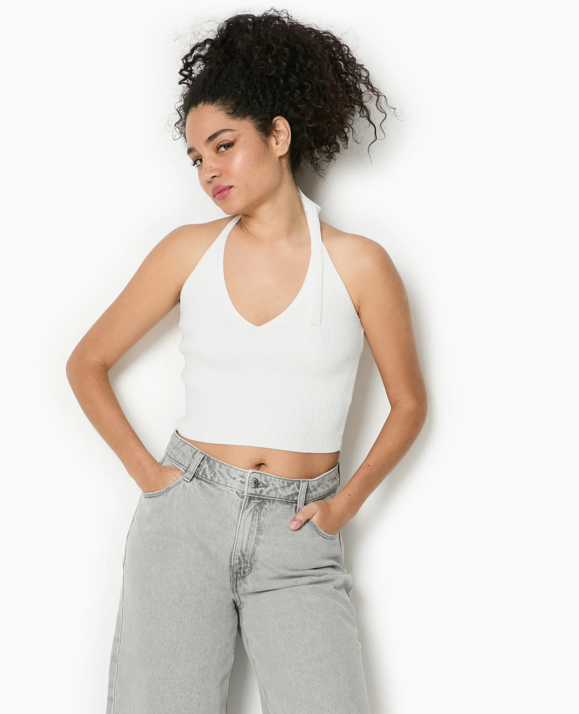 Top sans manches en maille côtelée