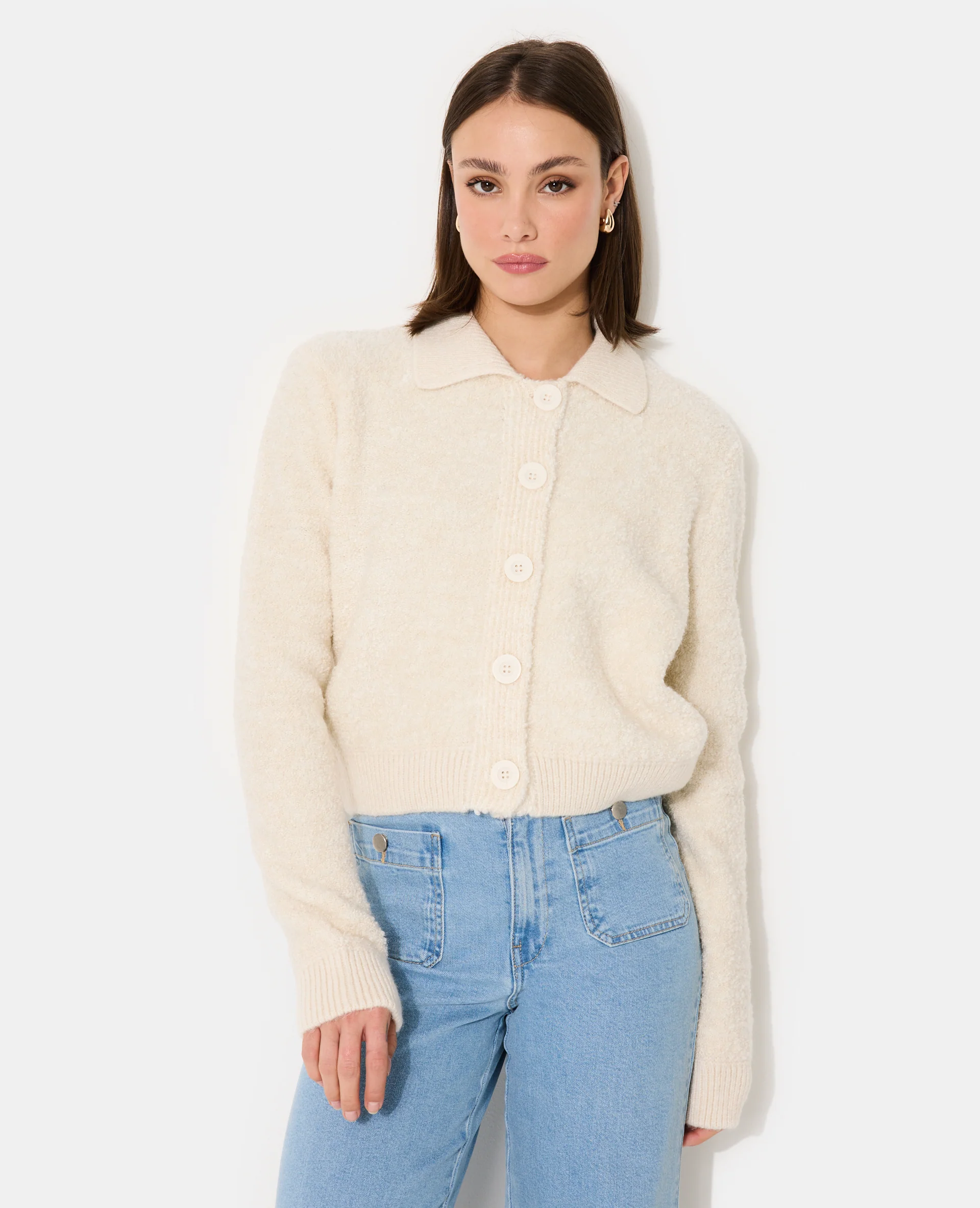 Gilet en maille bouclette avec col
