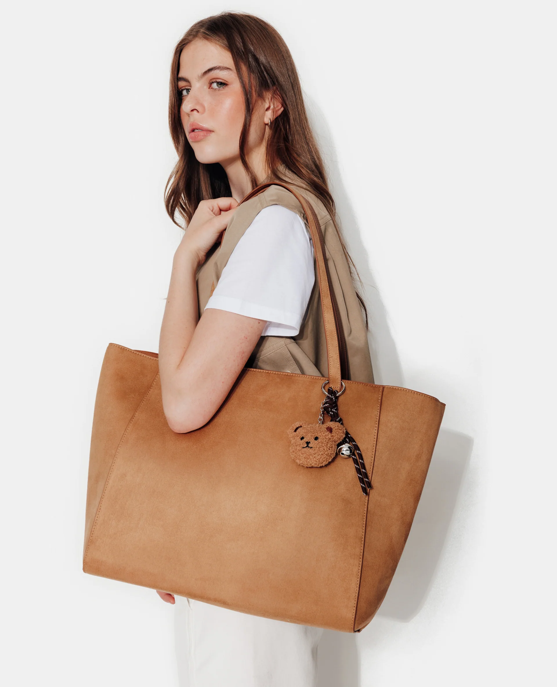 Grand sac en suédine avec poche et poignées