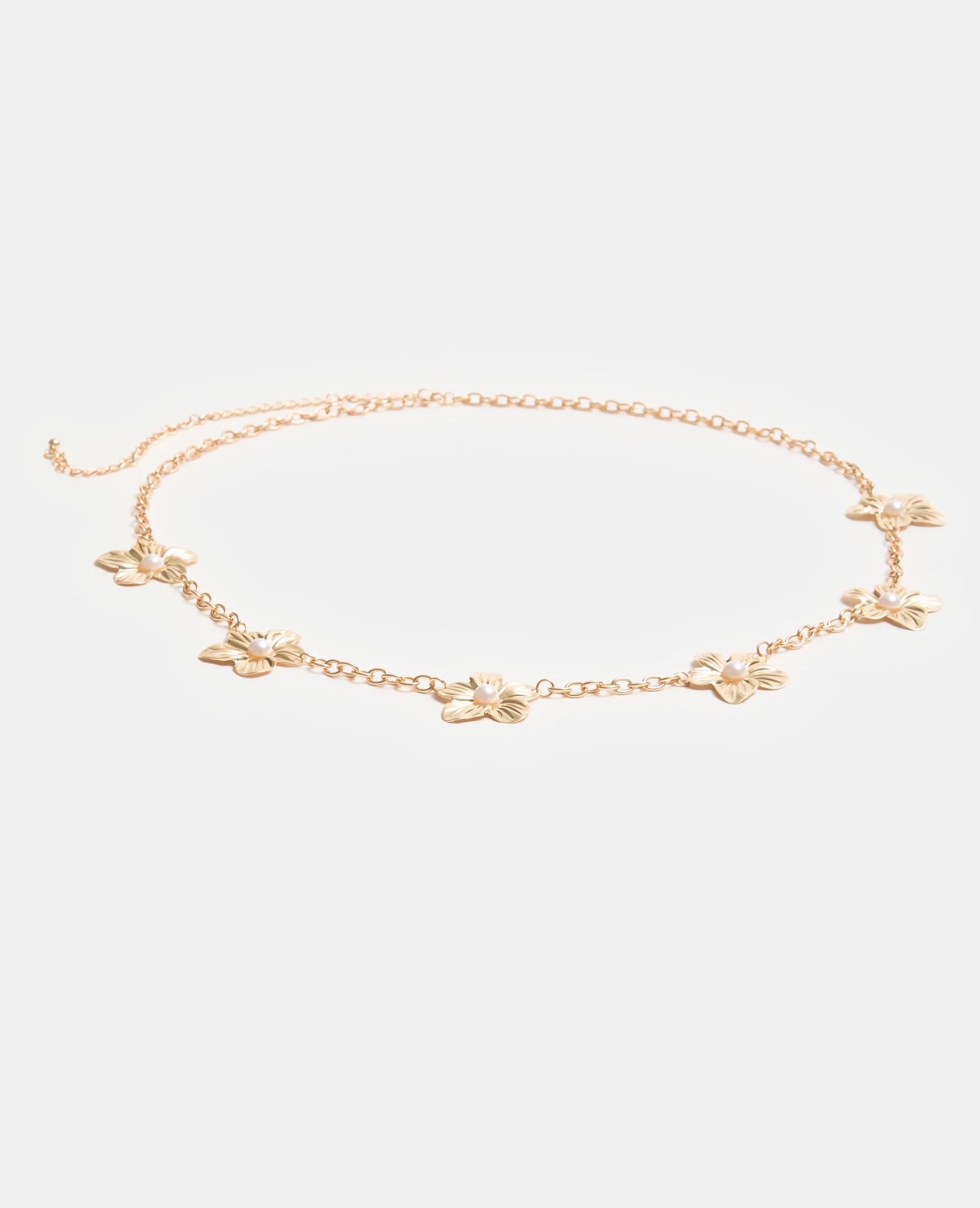 Ceinture chaîne avec fleurs ibiscus et perles