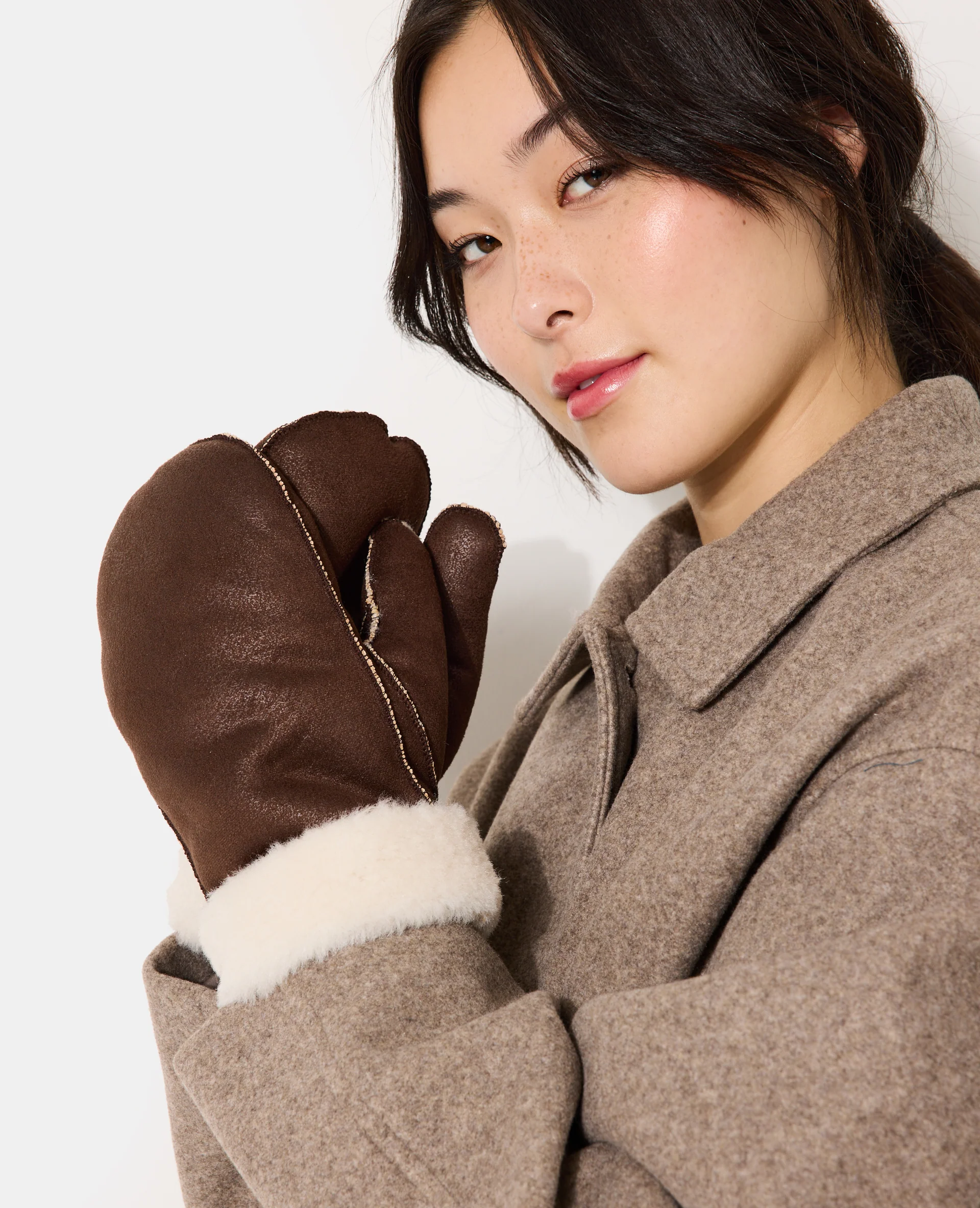 Moufles fourrées façon peau lainée