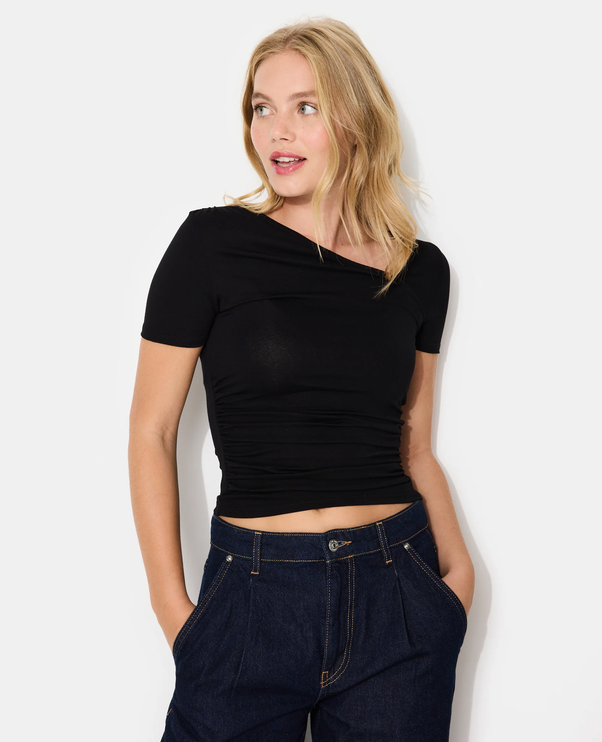 T-shirt avec encolure asymétrique et fronces