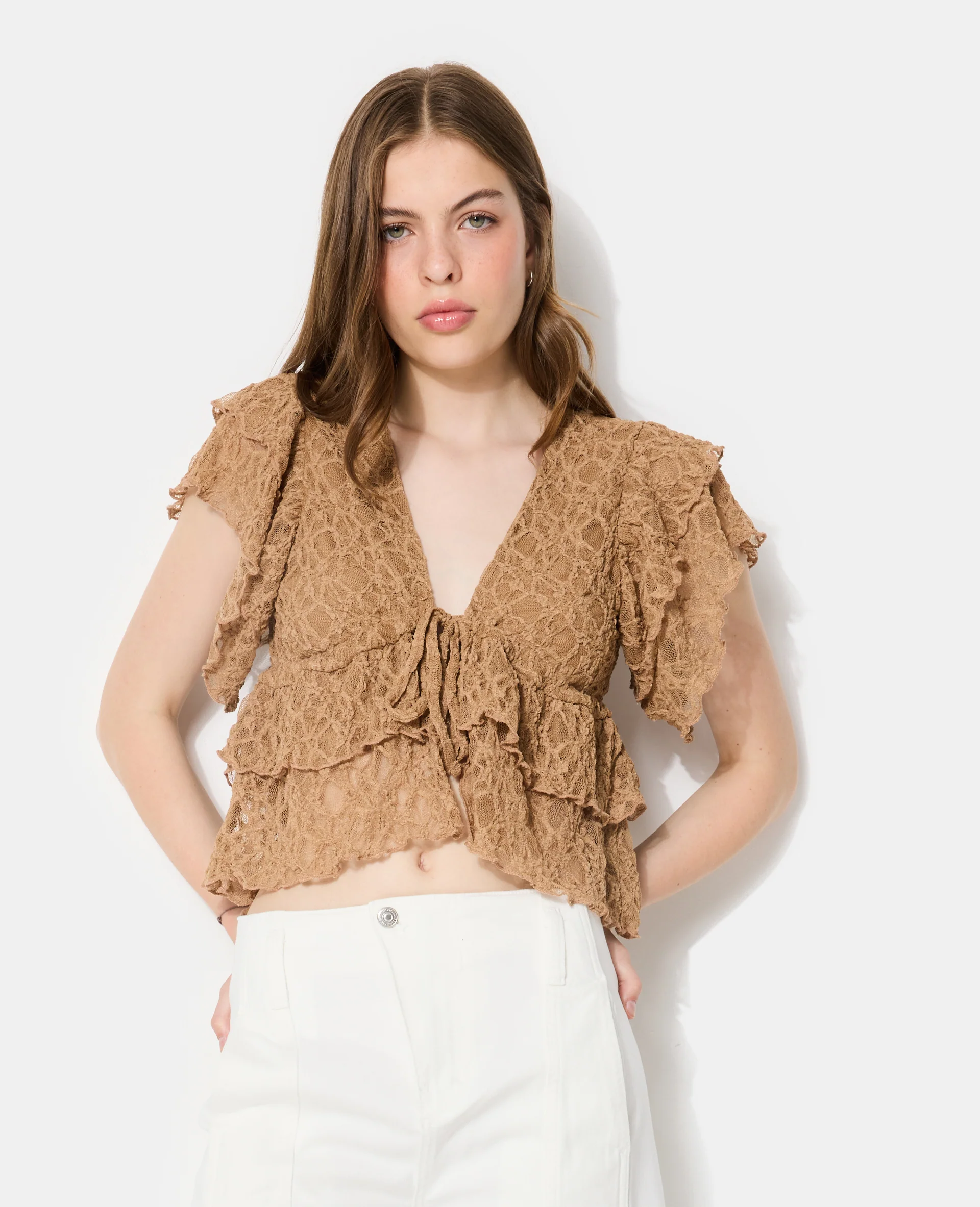 Top en dentelle avec nouettes et volants