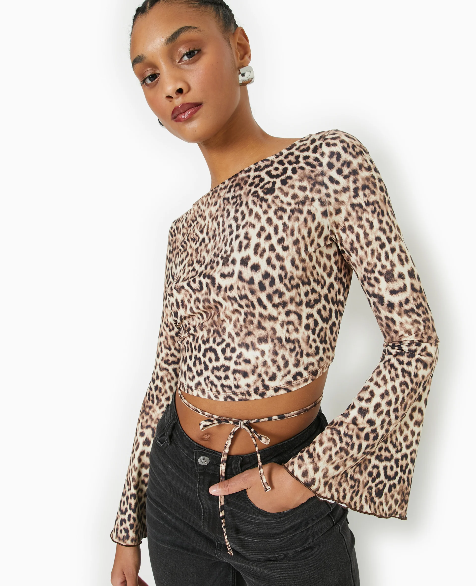 Top dos-nu manches flare motif léopard