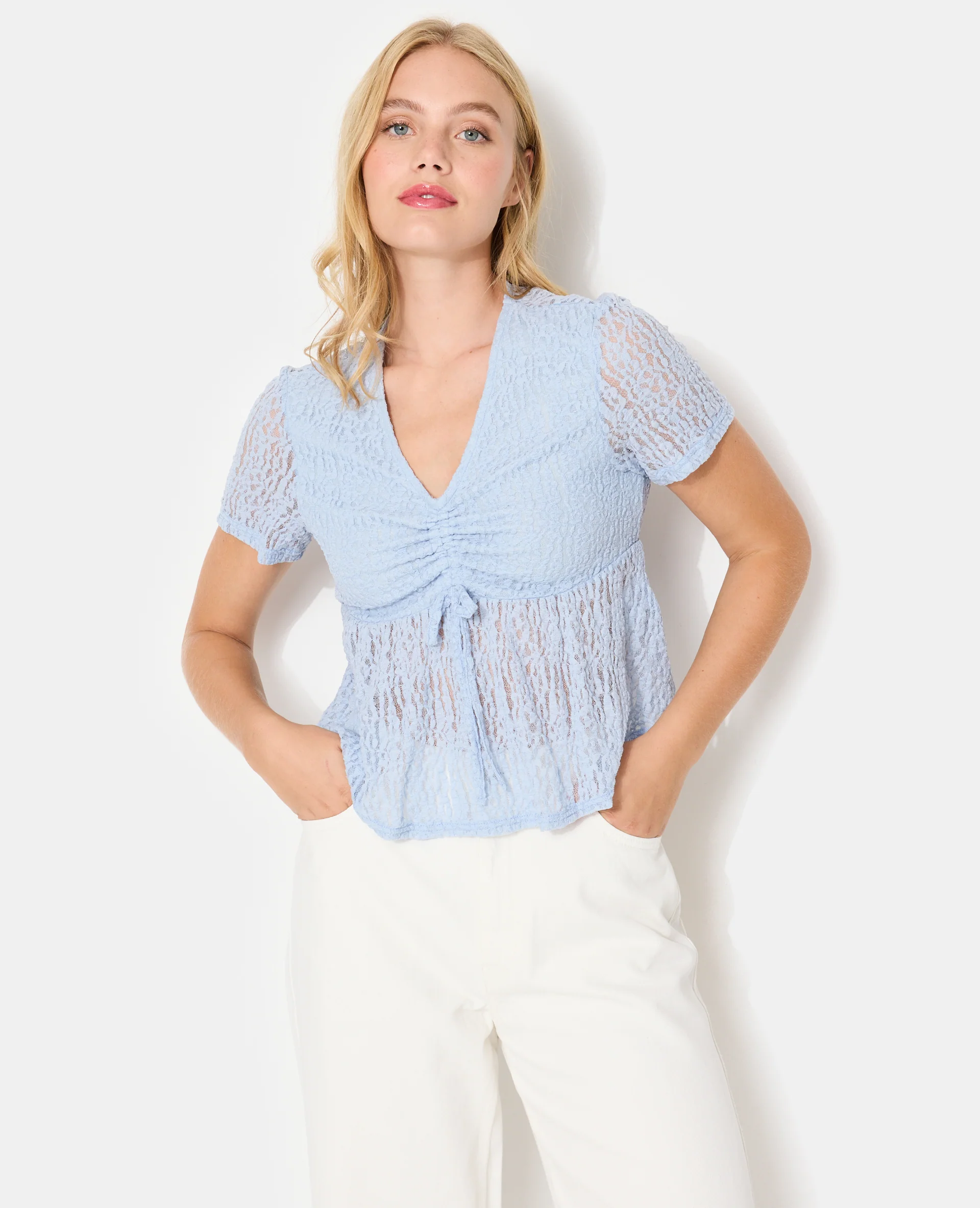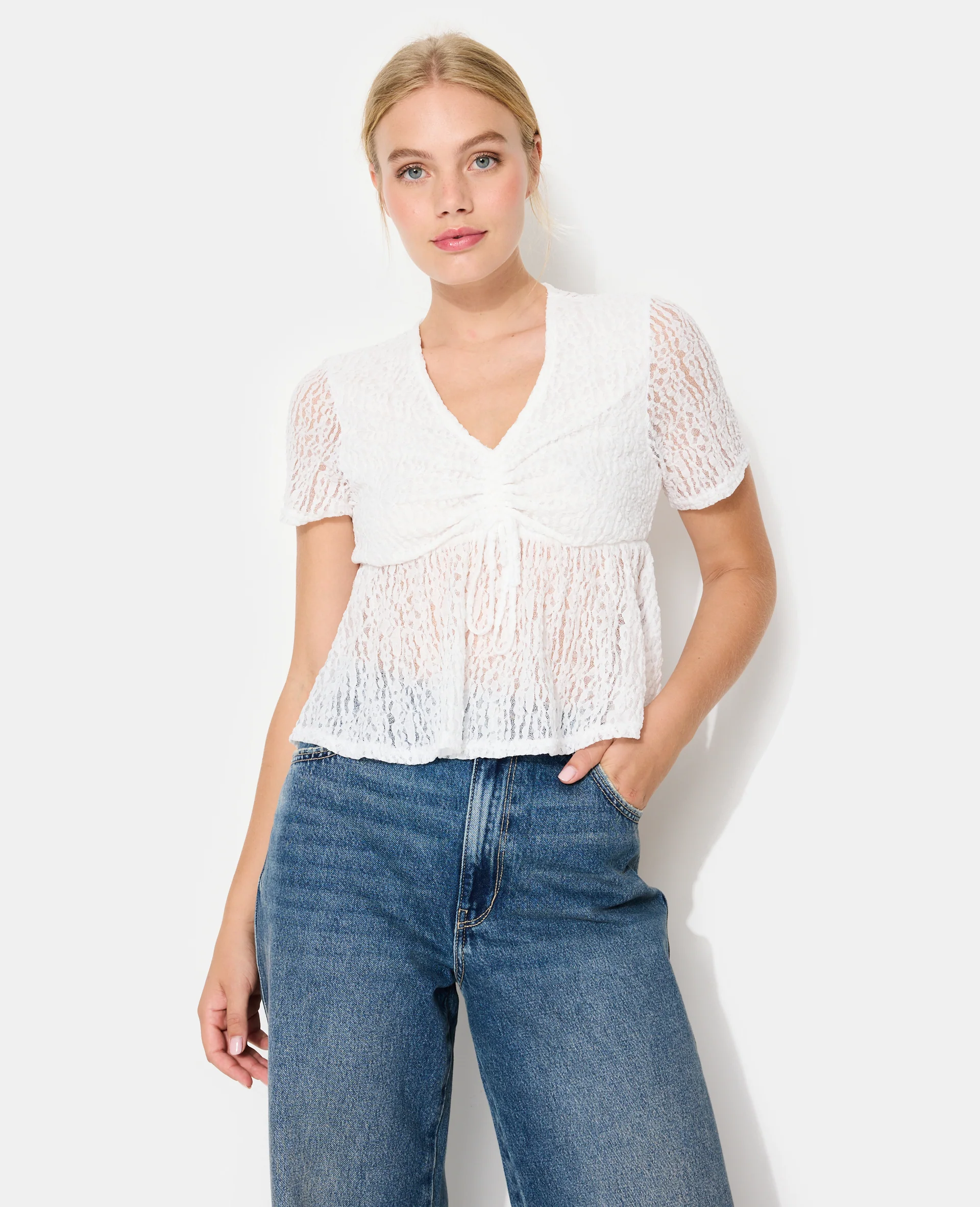 Top en dentelle avec col V et lien coulissé