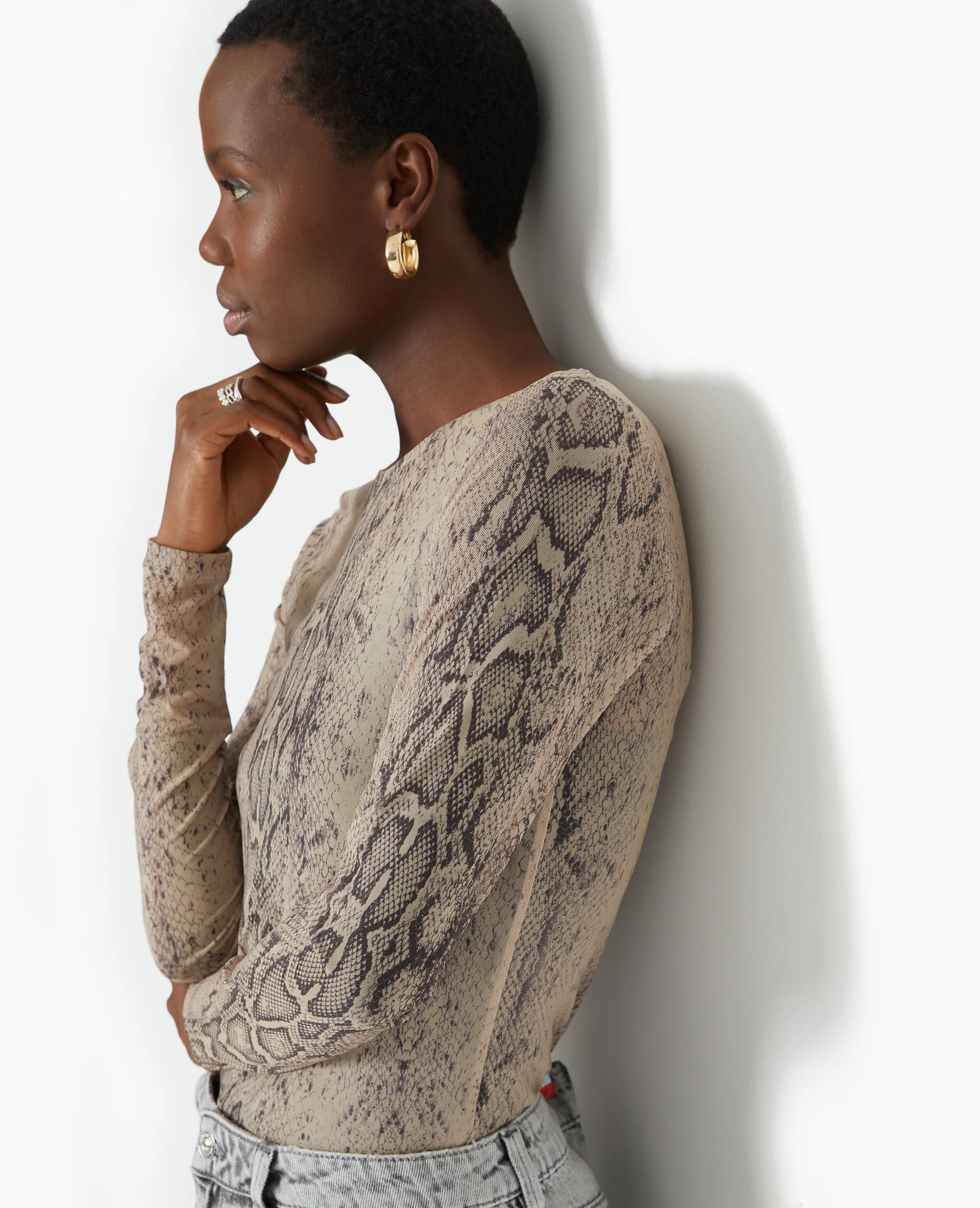 Top manches longues en résille motif python