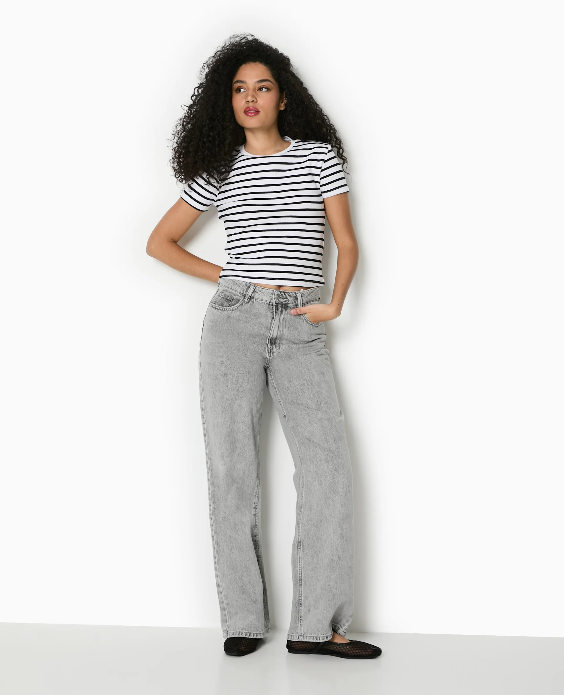 T-shirt court en maille côtelée rayée