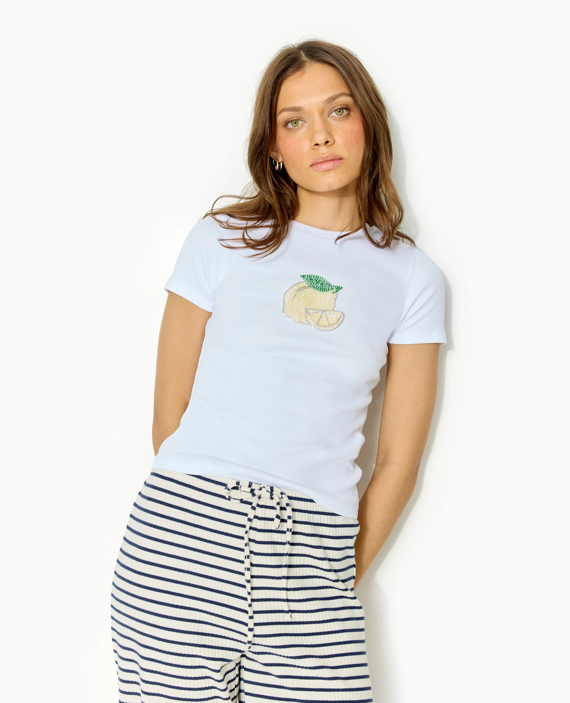 T-shirt ajusté en maille côtelée avec citron