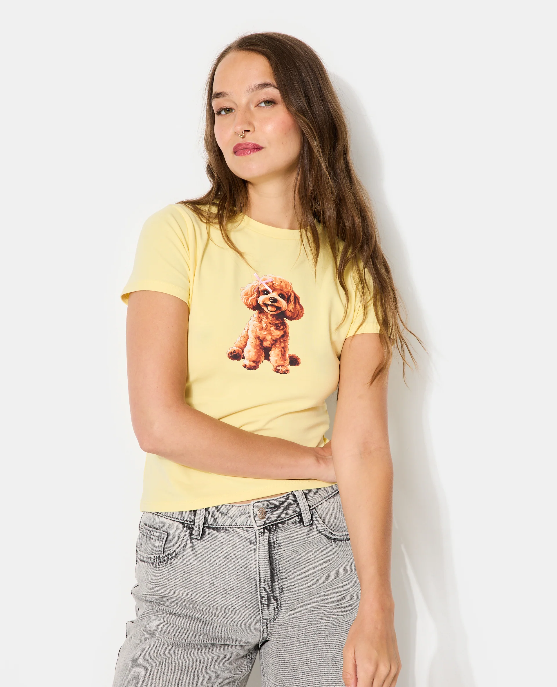 T-shirt ajusté avec print chien + nœud cousu