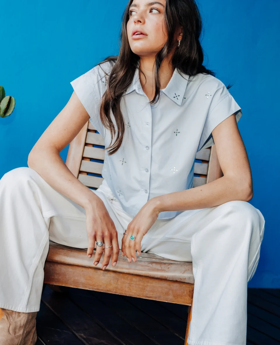 Chemise ample et courte avec strass