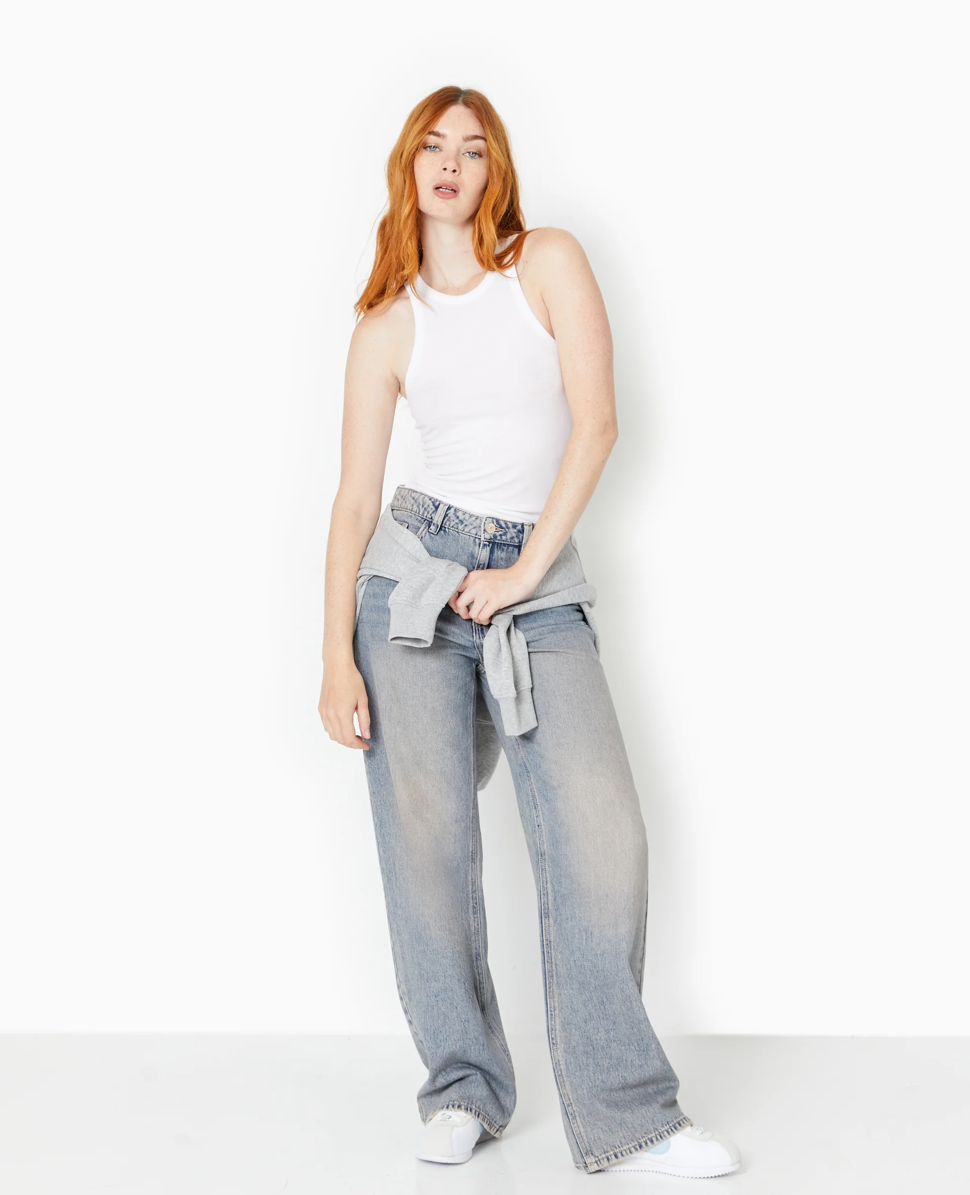 Débardeur échancré en maille côtelée et fluide