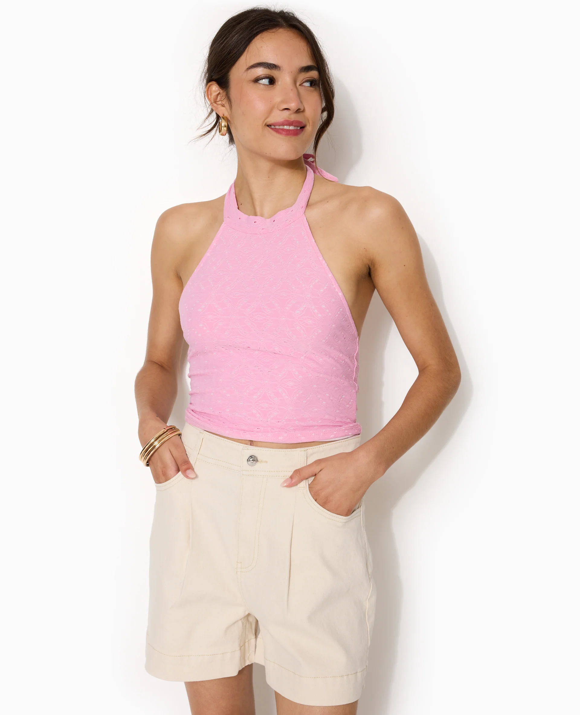 Top dos-nu effet broderie anglaise
