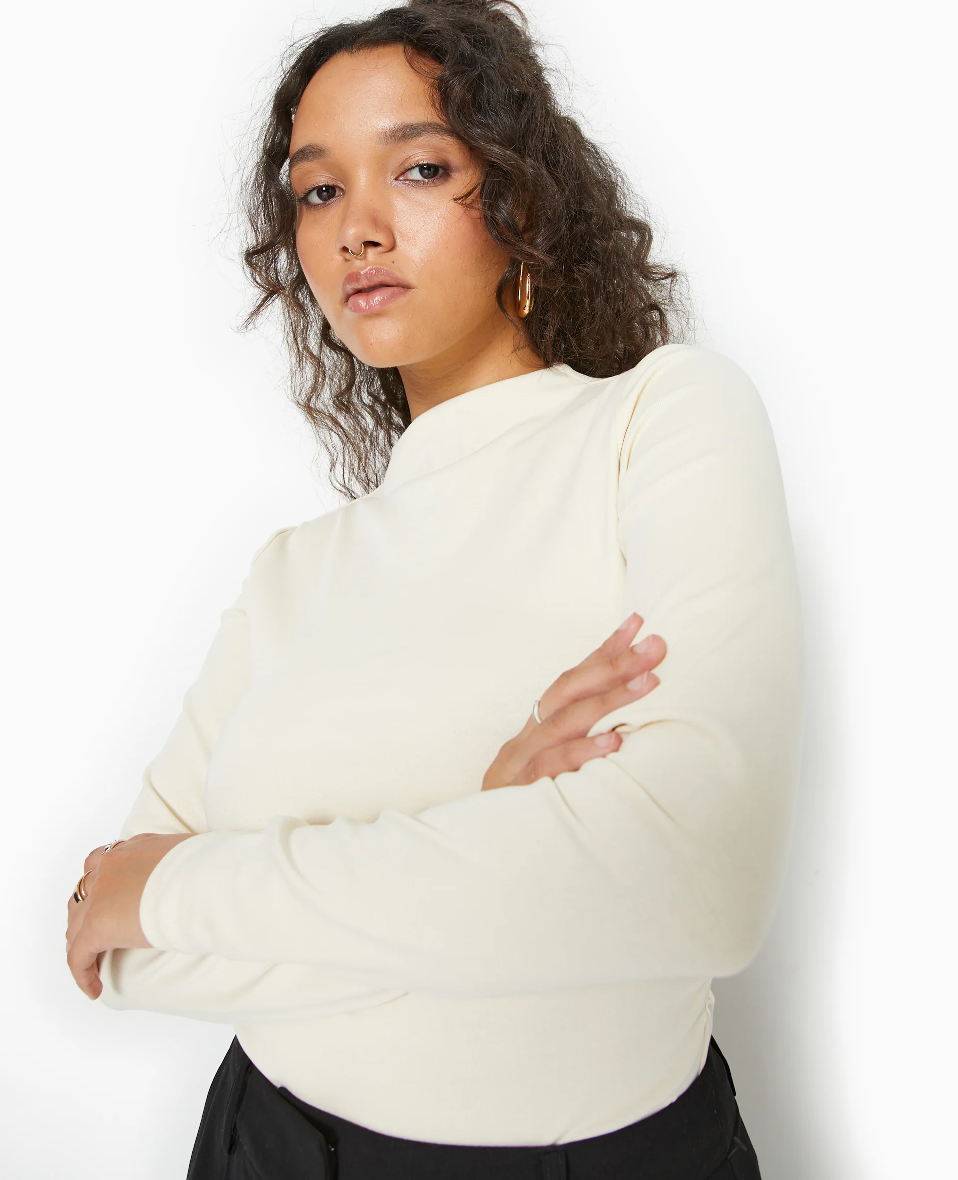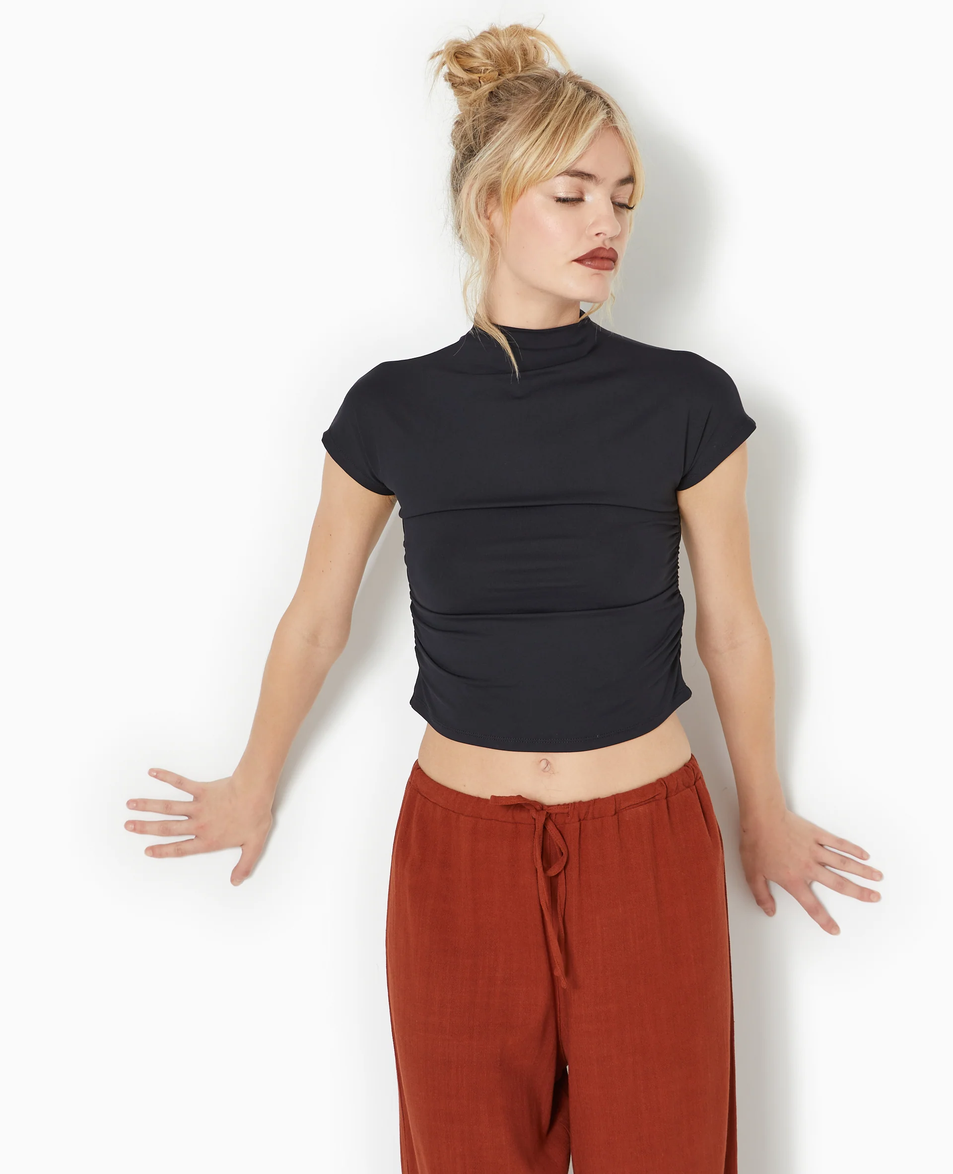 Top col montant avec fronces côtés