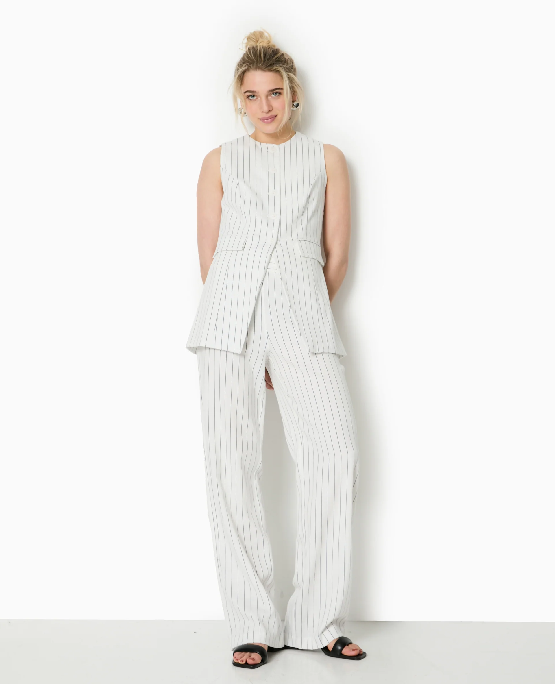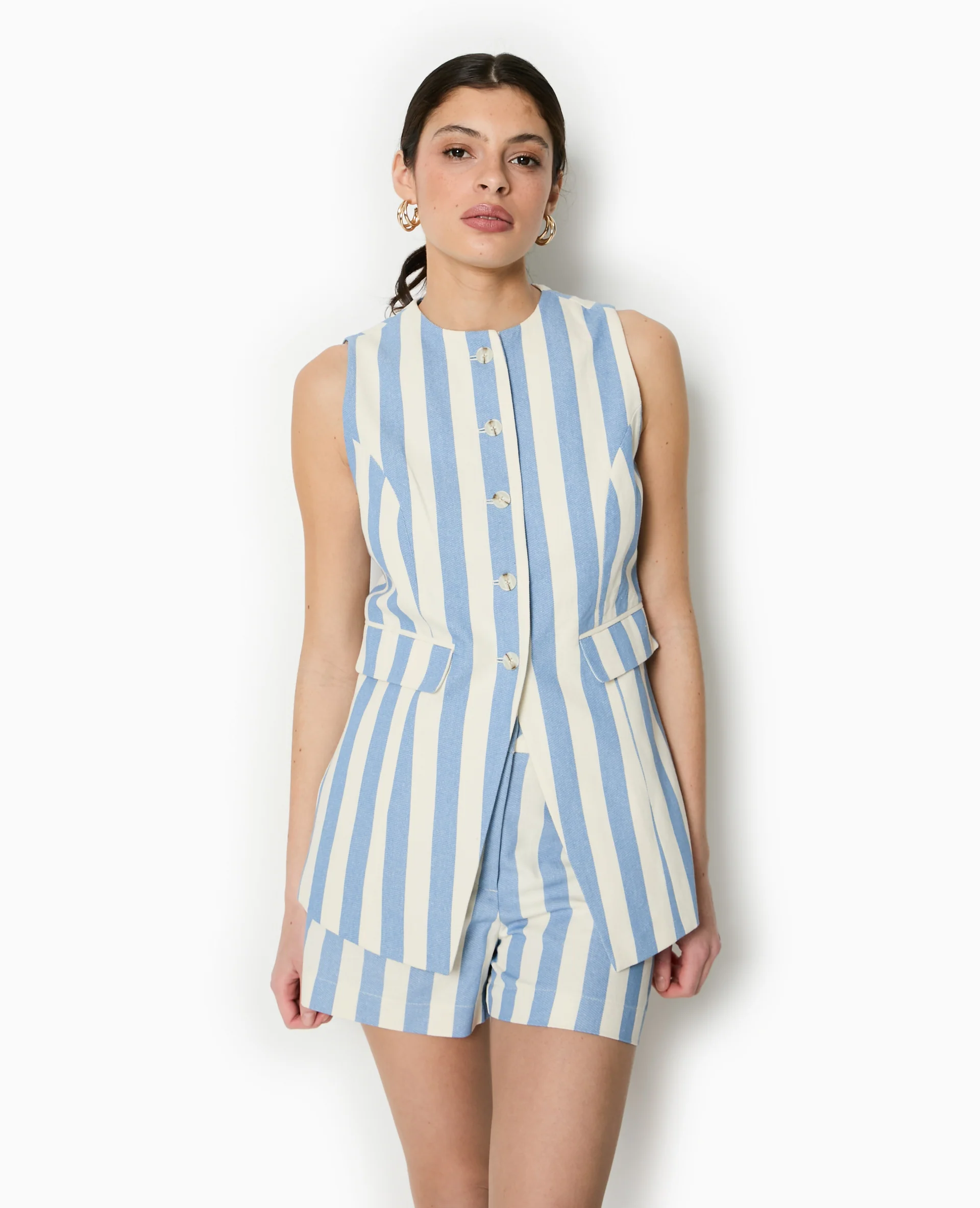 Veste longue sans manche avec fines rayures