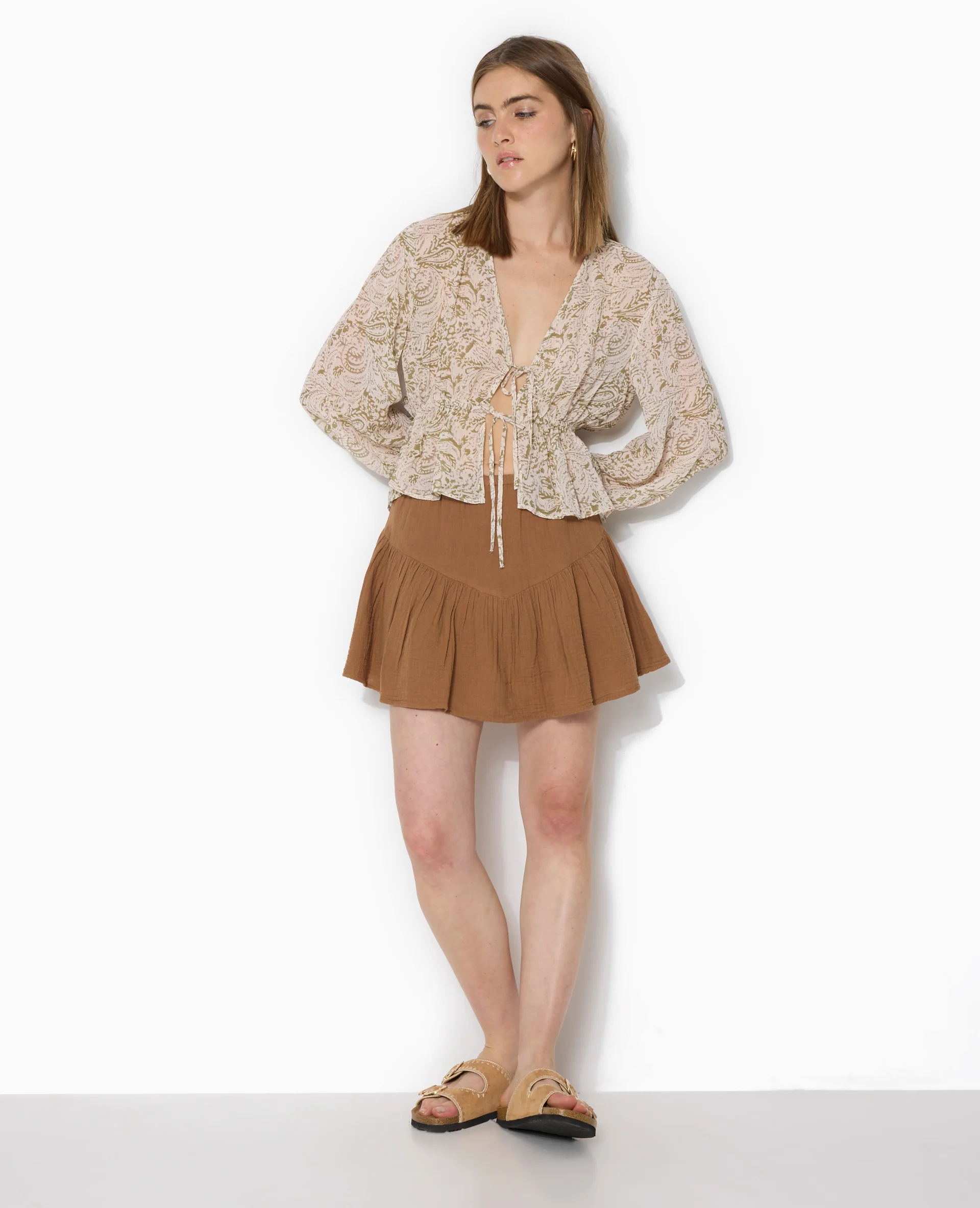 Jupe-short en gaze de coton avec volant