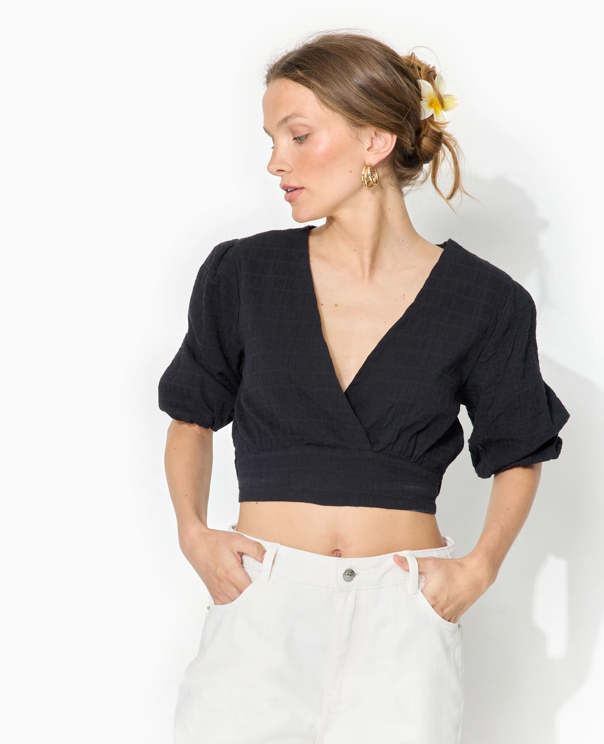 Blouse courte encolure V croisée