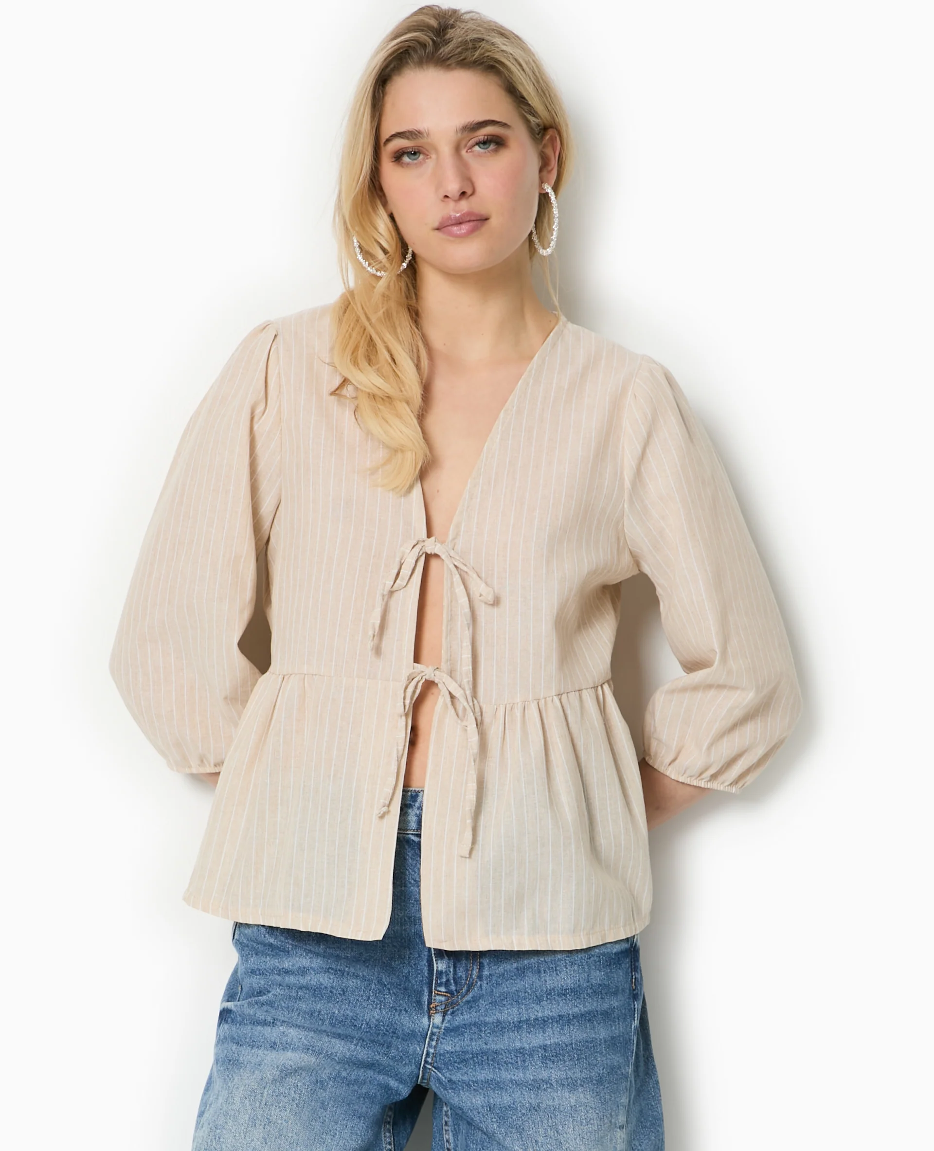 Blouse rayée avec nouettes et manches bouffantes