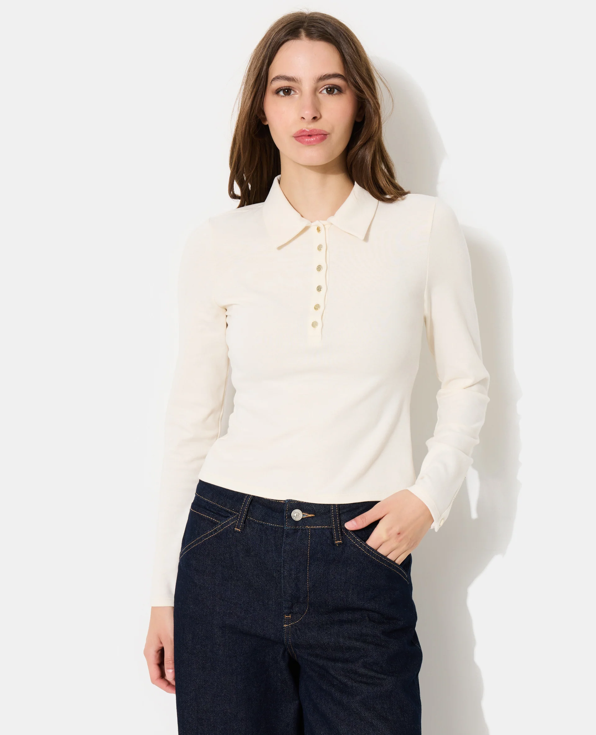 Polo manches longues boutons fantaisie