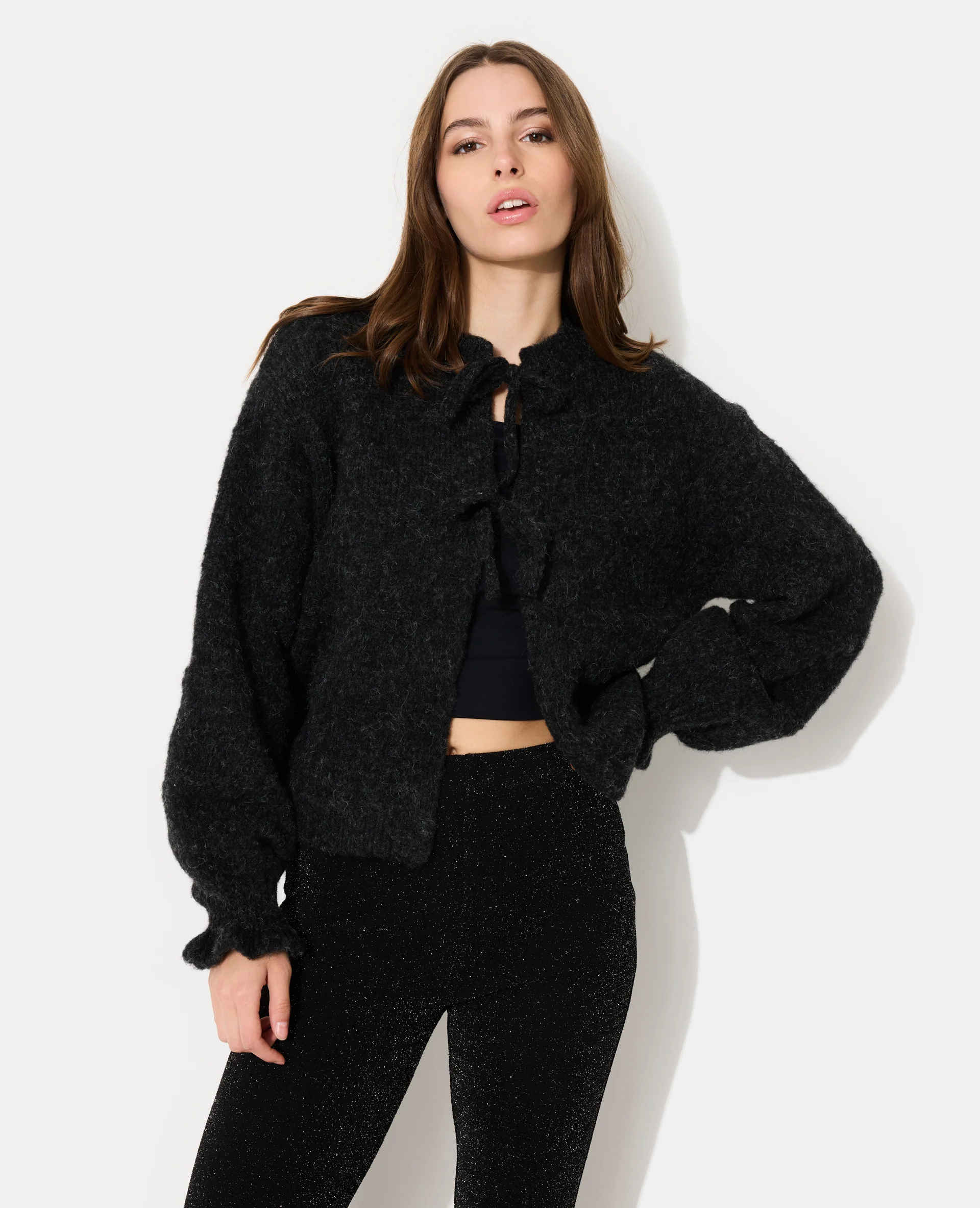 Gilet en maille fantaisie avec nouettes et volants